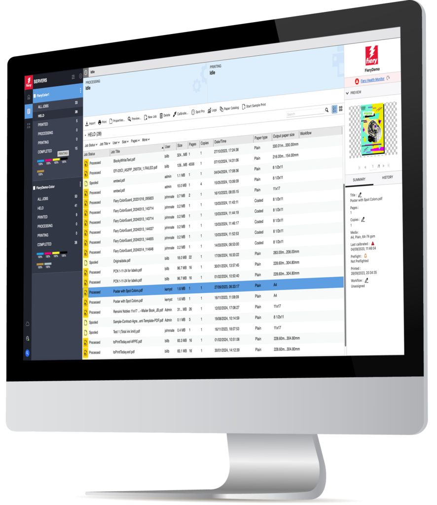 By centralizing the print room in this way, Fiery DFEs dramatically reduce the time and training needed to run a successful production environment. Operators no longer need months to master various vendor-specific tools; with Command WorkStation’s consistent, intuitive experience, even new or less-experienced staff can get up to speed quickly. This is especially valuable given the industry’s shortage of skilled print operators – a gentler learning curve means new employees become productive in far less time. In short, Fiery’s focus on user experience empowers print businesses to work more efficiently and adapt faster. A unified Fiery workflow not only streamlines daily tasks and reduces errors, but also saves valuable time and resources, helping your print shop meet deadlines and grow business with confidence.