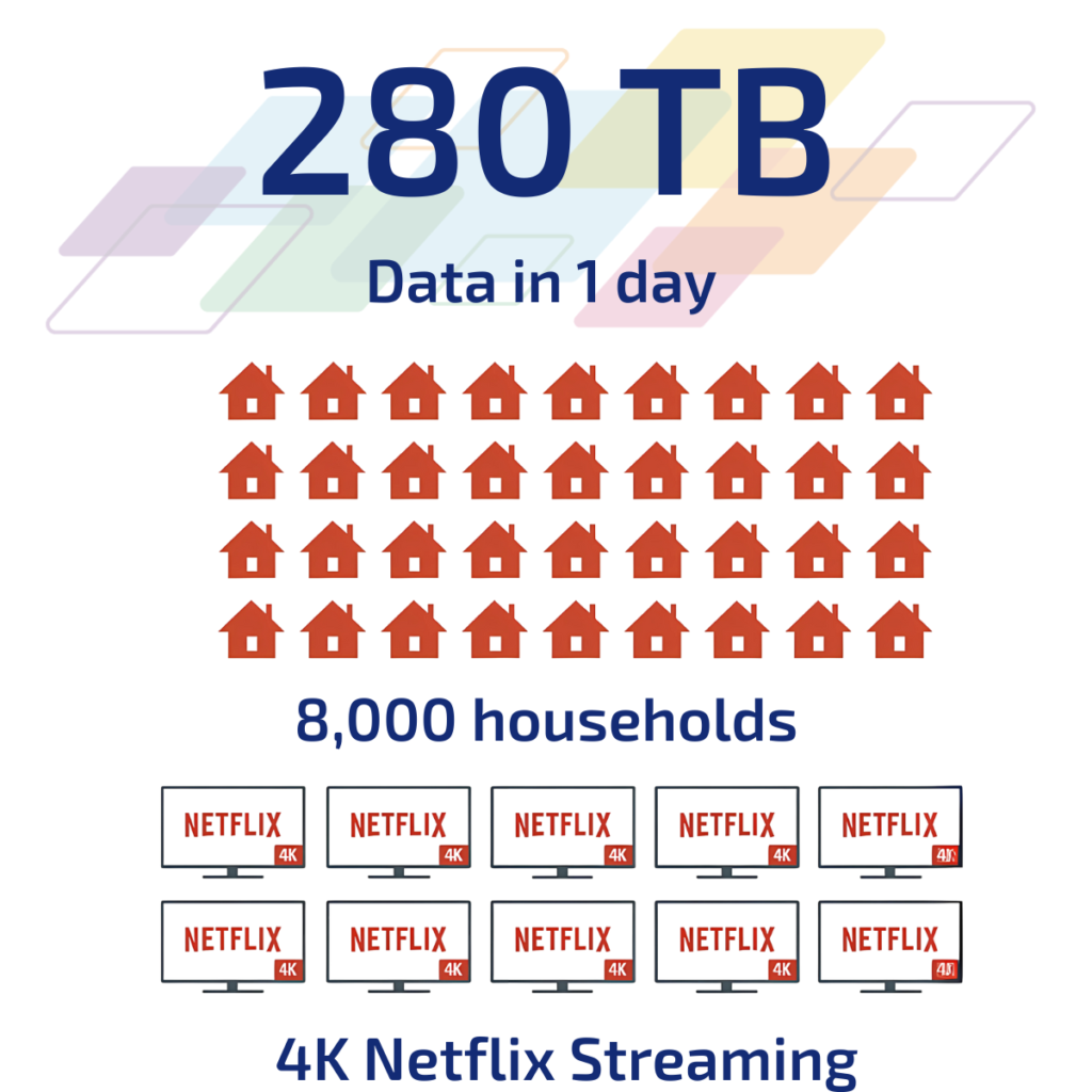 Today, one Fiery DFE image processing unit can handle over 280 TB of data per day—equal to 8,000 households streaming 4K Netflix movies simultaneously.