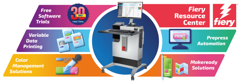 Fiery Graphic Arts Pro Package: Provides expert tools right on the Fiery server to identify and correct print production problems before they result in rejected jobs and wasted clicks. Request a 30-days free trial